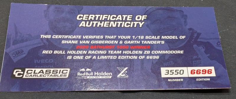 LIMITED EDITION CLASSIC CARLECTABLES 2020 RED BULL HOLDEN RACING TEAM ZB COMMODORE #97 BATHURST 1000 WINNER, 1:18 DIE-CAST MODEL