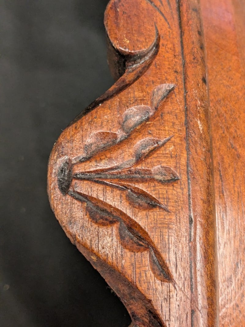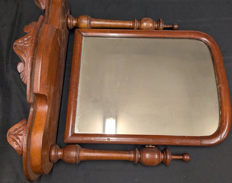 Elegant Victorian-Era Shaving Mirror Featuring Hand-Carved Timber Frame With Decorative Leaf And Shell Motifs