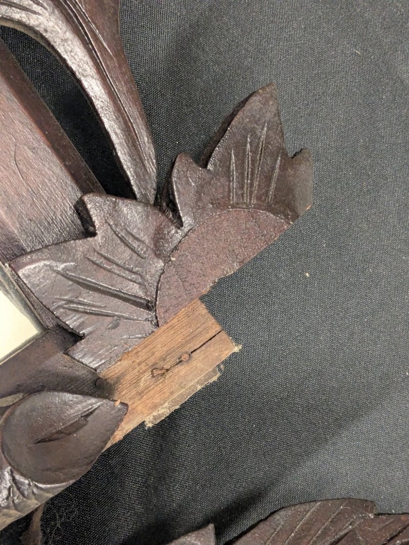 A Striking Carved Wooden Wall Mirror Featuring A Majestic Eagle Perched Atop An Ornate Frame With Scrolled Acanthus Leaf Motifs And Floral Rosettes.