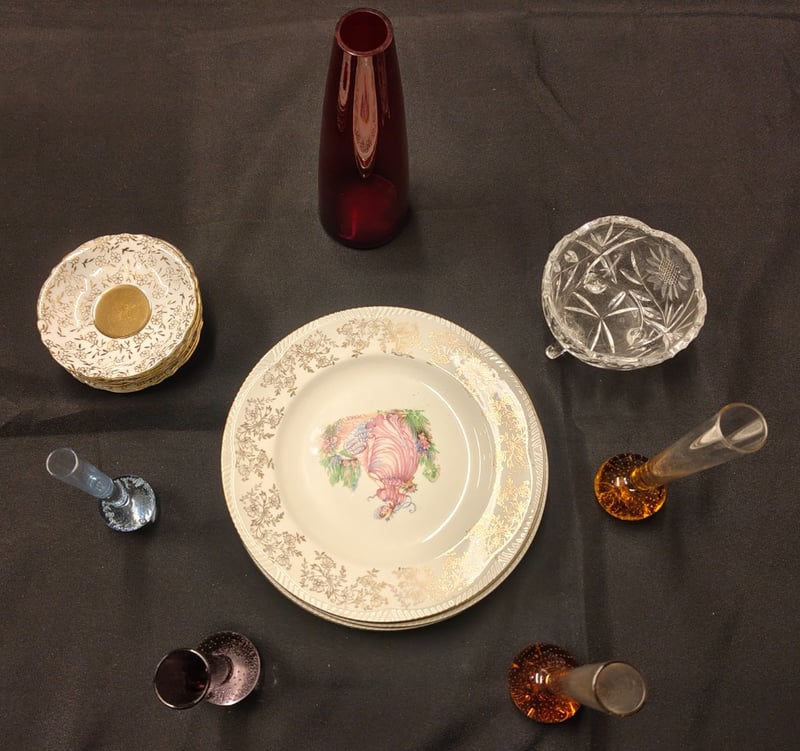 COLLECTION OF GLASSWARE, INCLUDING PLATES, VASES AND BOWL