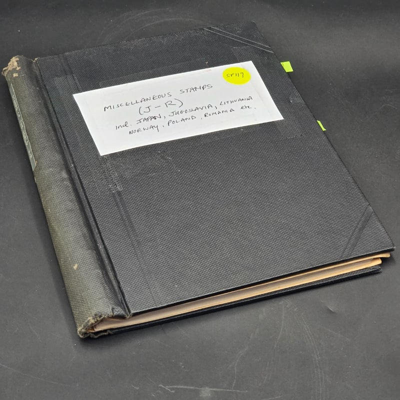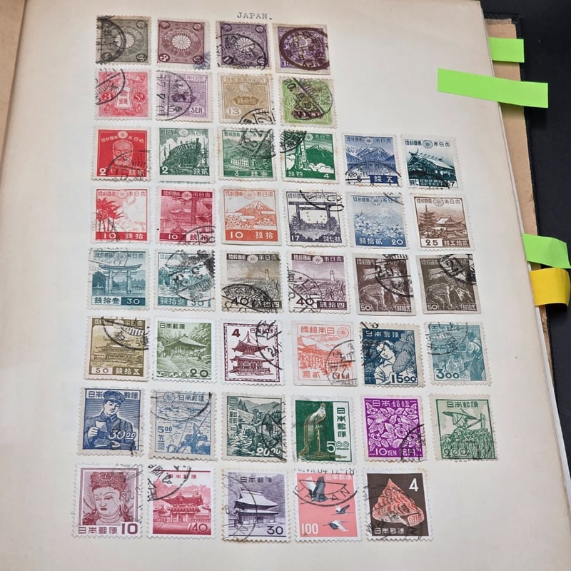 STAMPS, OLD ALBUM WITH MISCELLANEOUS COLLECTION COUNTRIES (J TO R) INCLUDES JAPAN, YUGOSLAVIA, NORWAY, POLAND, ROMANIA ETC