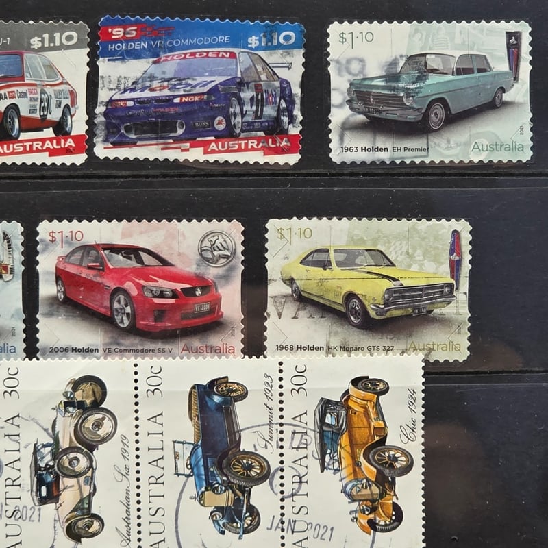 STAMPS, AUSTRALIAN THEMATIC CAR STAMPS, VFU