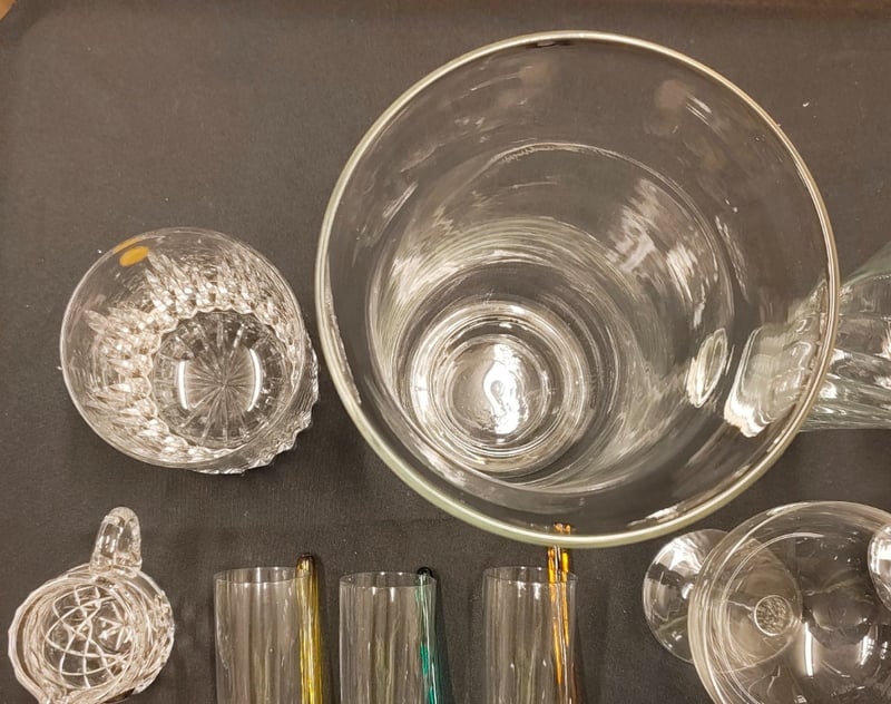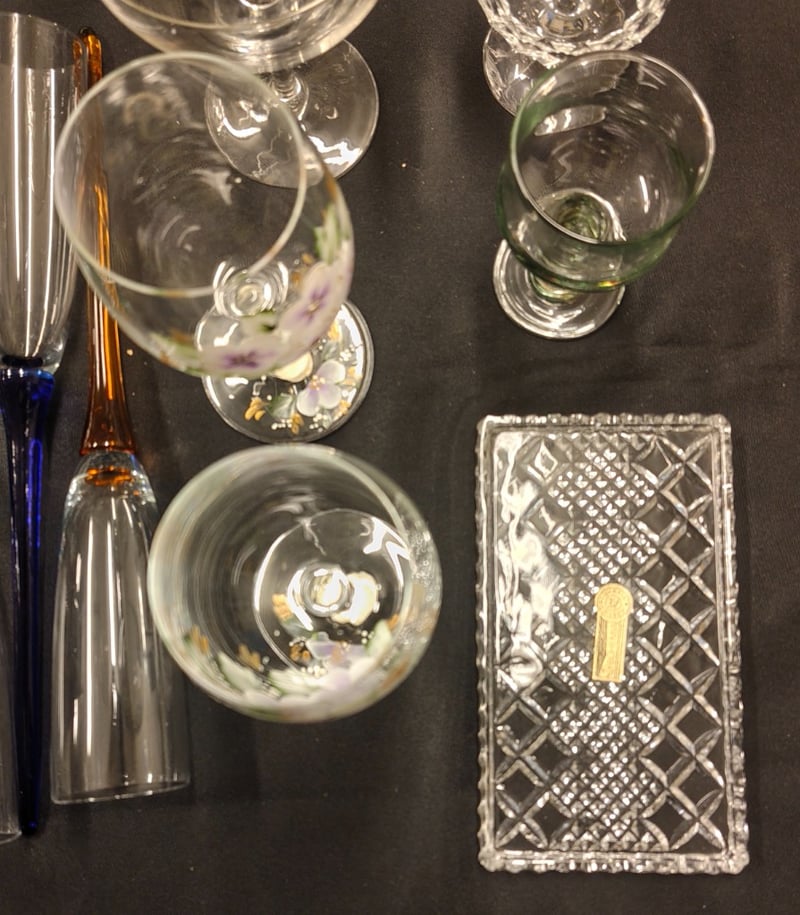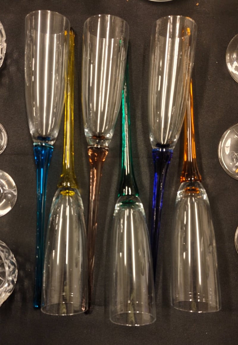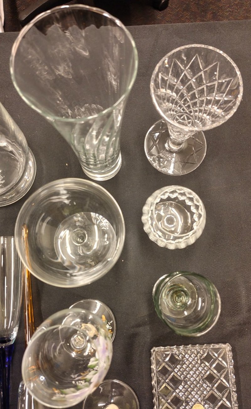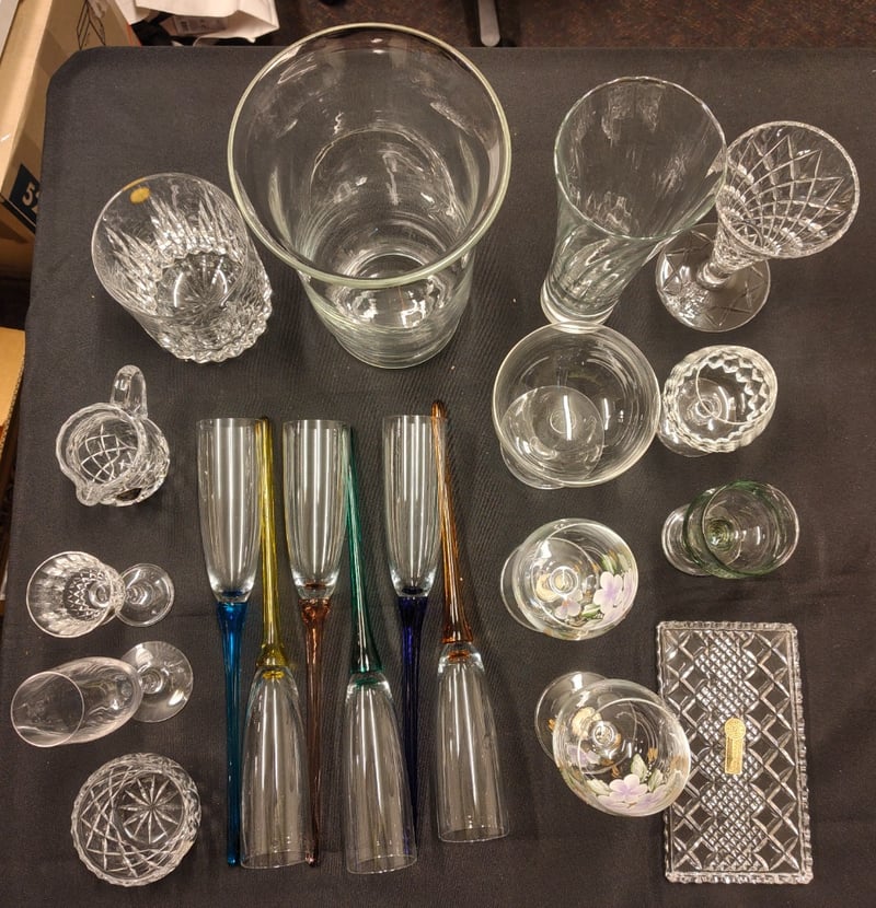 COLLECTION OF GLASSWARE, INCLUDING GLASSES, VASES, CHAMPAGNE FLUTES, AND MORE