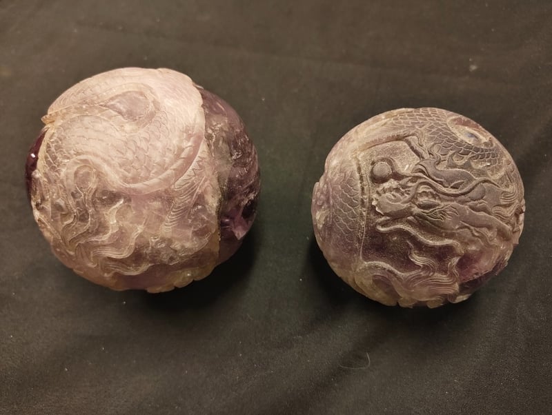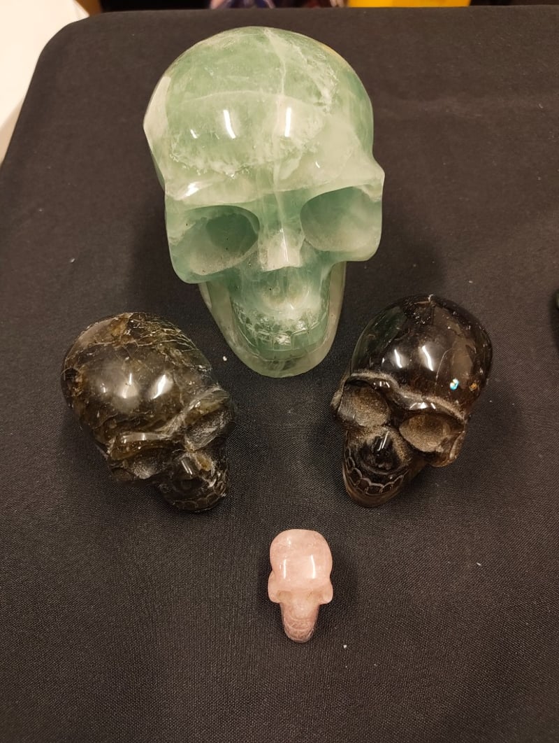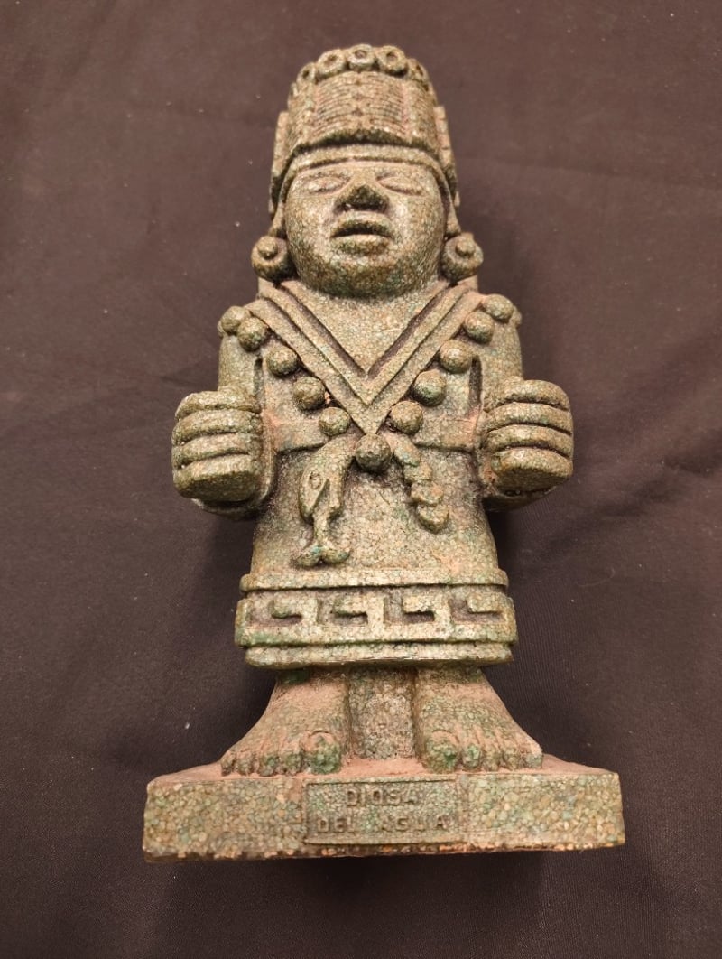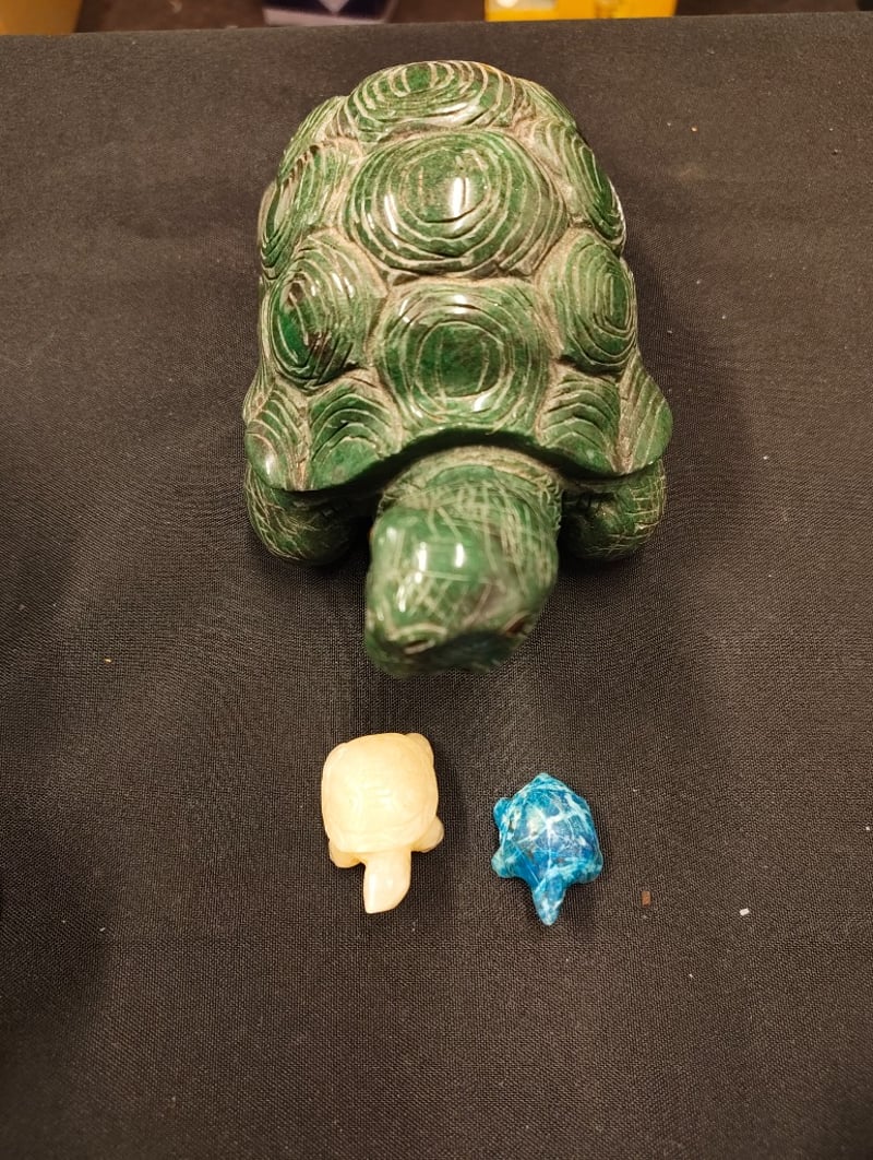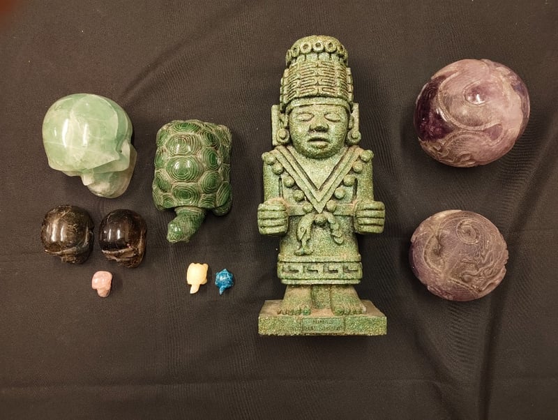 COLLECTION OF CARVED ANTIQUES, INCLUDING SKULLS, TURTLES, SPHERES AND AZTEC-STYLE FIGURINE