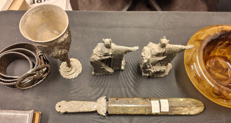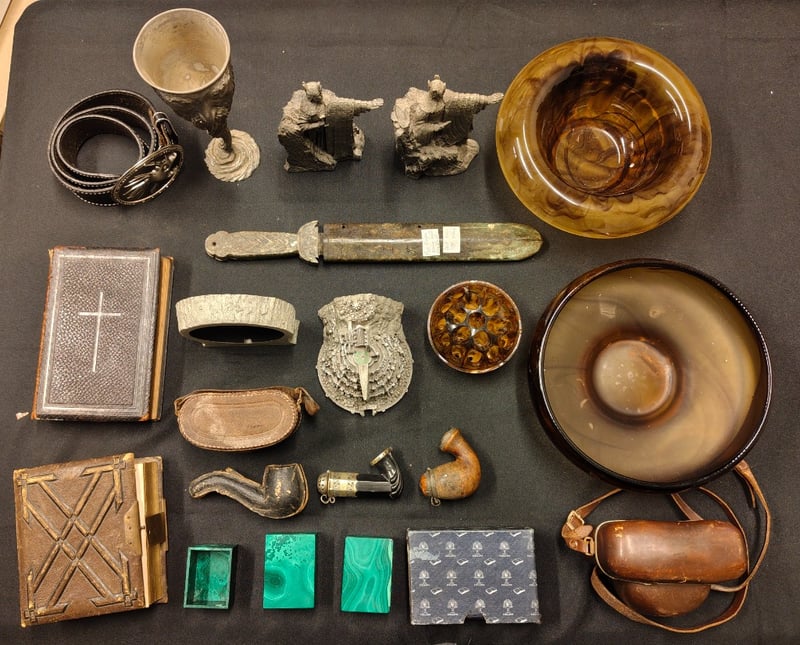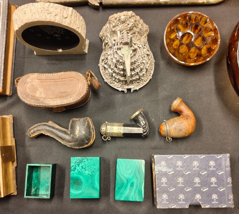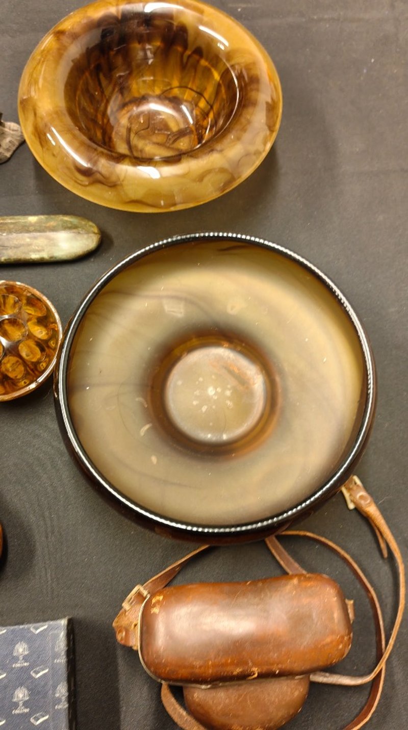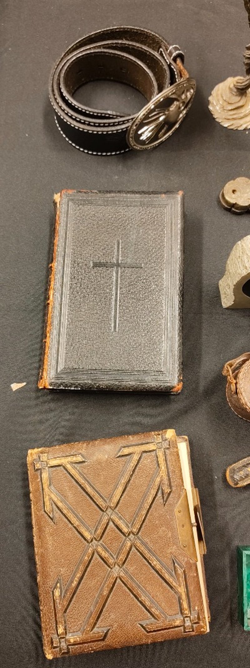 COLLECTION OF ANTIQUE ITEMS, INCLUDING STATUETTES, BOOKS, CAMERA, AND MORE