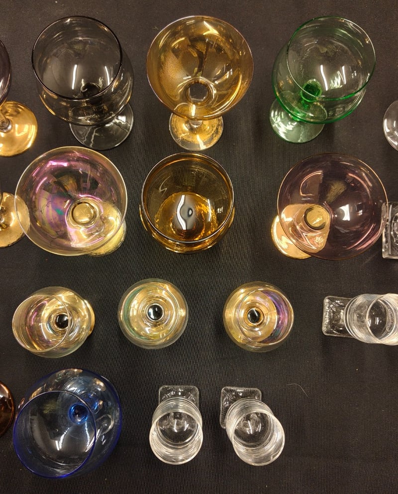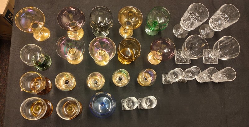COLLECTION OF CLEAR AND COLOURED WINE GLASSES
