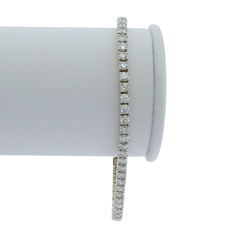 2.10 Carats 18 Karat Yellow Gold Lab Grown Diamond Tennis Bracelet With A Box Clasp And Safety Latches. The Bracelet Is In A New Condition With A Polish Finish Featuring: