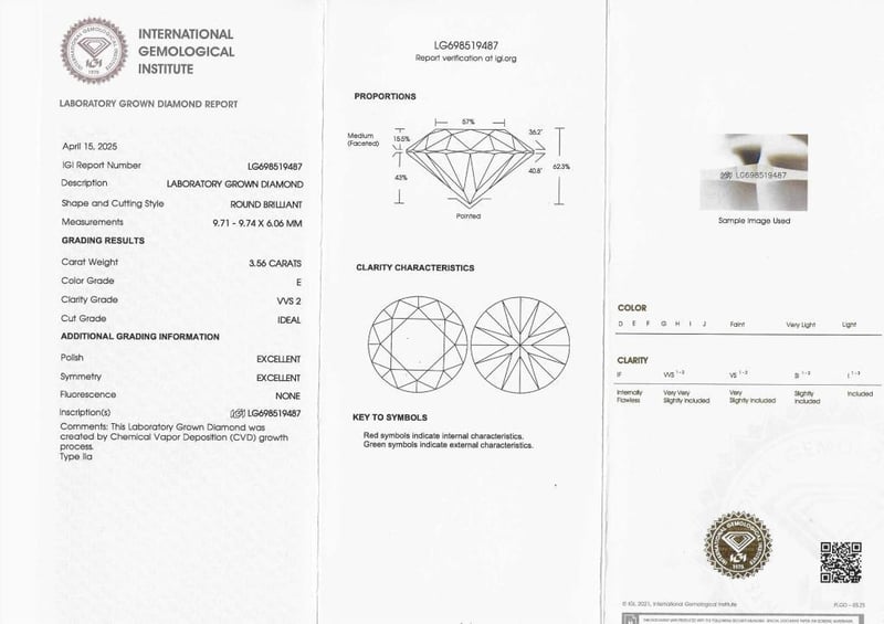 Please note that while all lab grown diamonds listed include certification, the report number or identification may vary upon arrival. This is due to standard manufacturing and batching processes. However, the diamond’s specifications — including carat, color, cut, and clarity — will match or may even exceed those advertised.