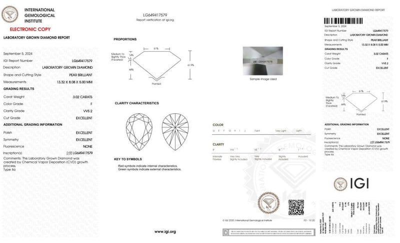 Please note that while all lab grown diamonds listed include certification, the report number or identification may vary upon arrival. This is due to standard manufacturing and batching processes. However, the diamond’s specifications — including carat, color, cut, and clarity — will match or may even exceed those advertised.