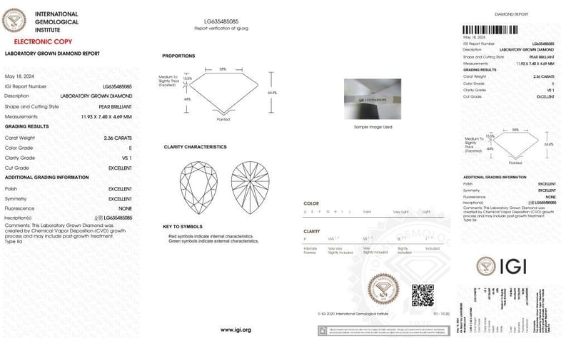 Please note that while all lab grown diamonds listed include certification, the report number or identification may vary upon arrival. This is due to standard manufacturing and batching processes. However, the diamond’s specifications — including carat, color, cut, and clarity — will match or may even exceed those advertised.