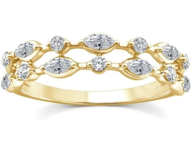 9K Yellow Gold 0.40Ct F Vs Lab Diamond Dainty Double Ring