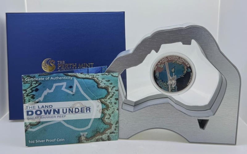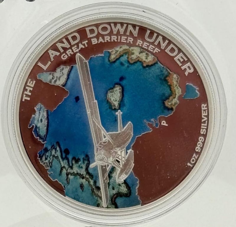 1 OZ SILVER PROOF COIN - THE LAND DOWN UNDER GREAT BARRIER REEF - COIN # 0599