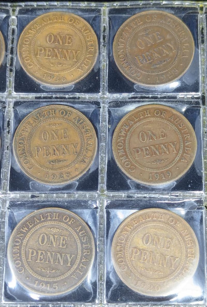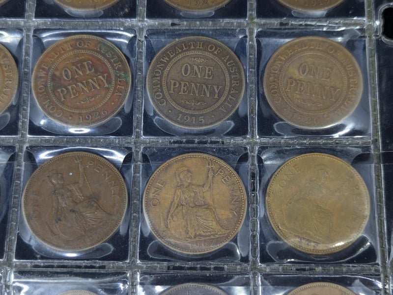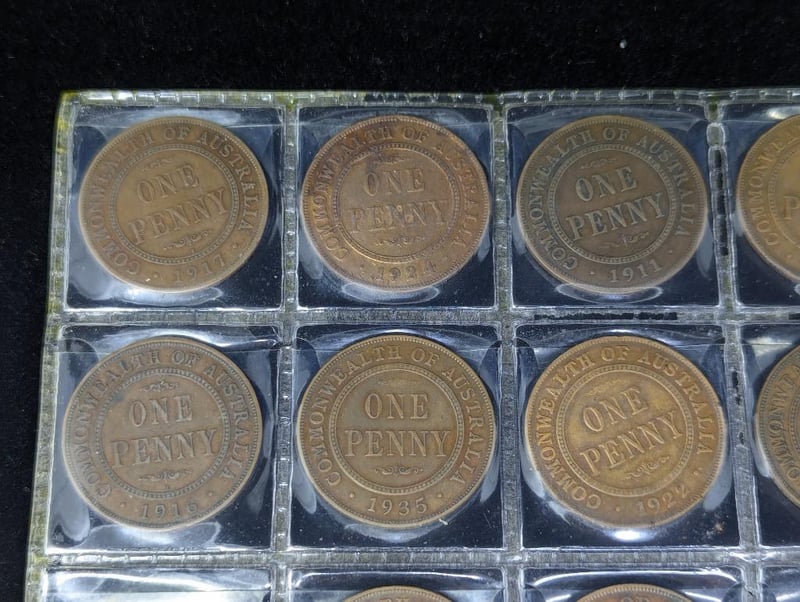 Coins Include Australian Penny Coins With Dates Including: 1911, 1915, 1916, 1917, 1919, Etc, Australian Half Penny Coins (Dates Include: 1921, 1926, 1933),