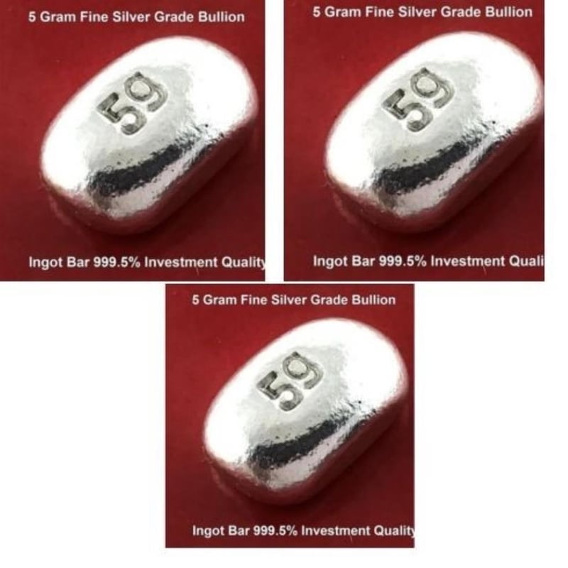 SILVER BULLION 999.5 FINE GRADE 5G INVESTOR QUALITY INGOT BAR HAND POURED X 3