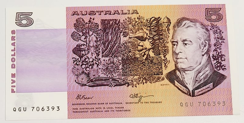 AUSTRALIAN $5 SIGNED BANKNOTE - QGU706393Condition: UncProvenance: Cv - $45488544+84