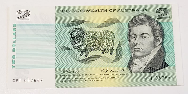 AUSTRALIAN $2 SIGNED BANKNOTE - GPT052642, R83488544+133