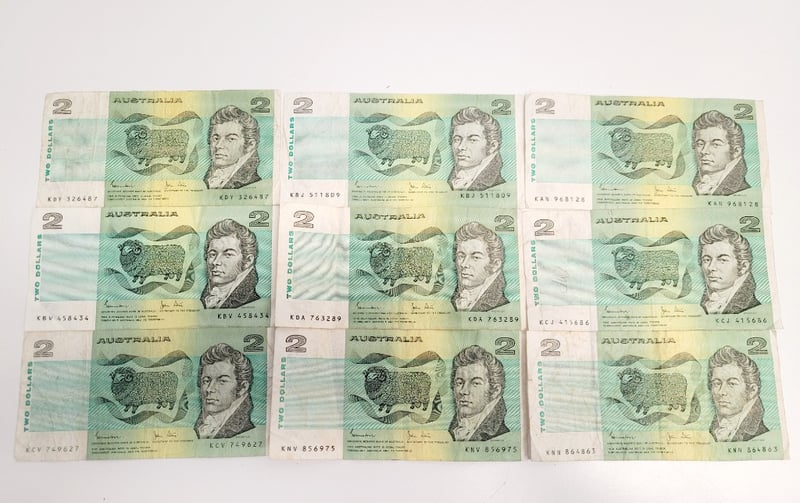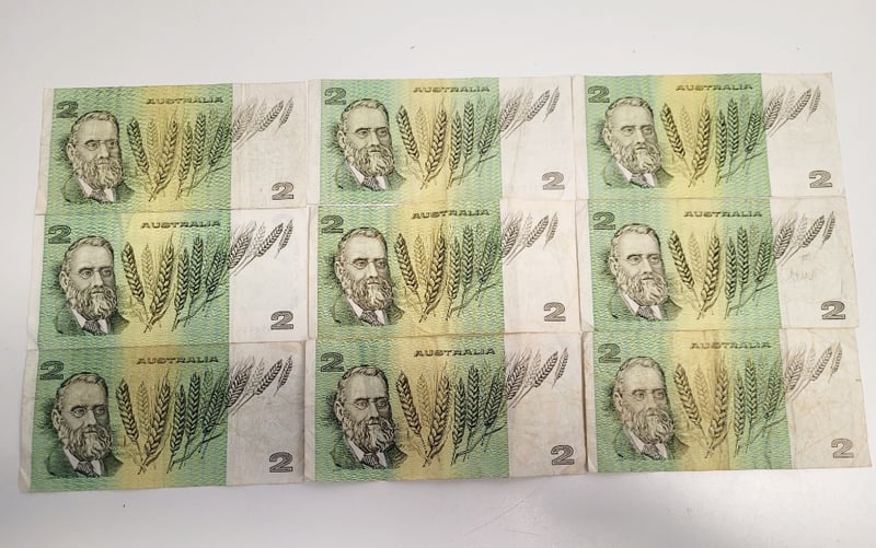9X $2 AUSTRALIAN BANK NOTES.488544+14