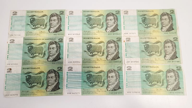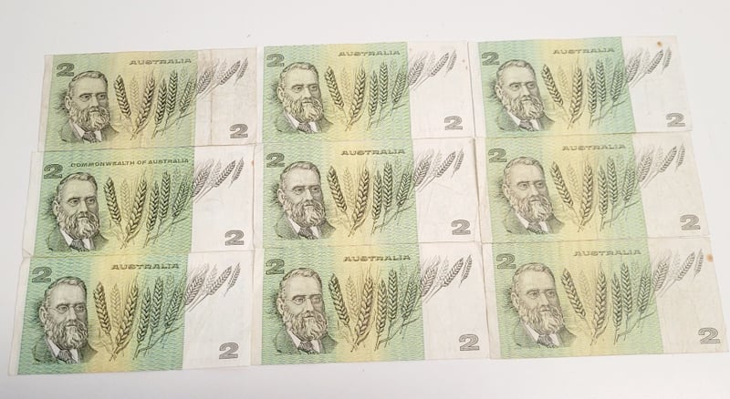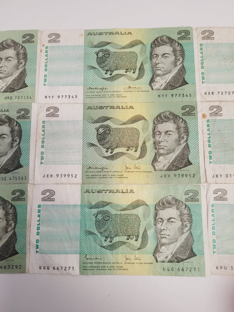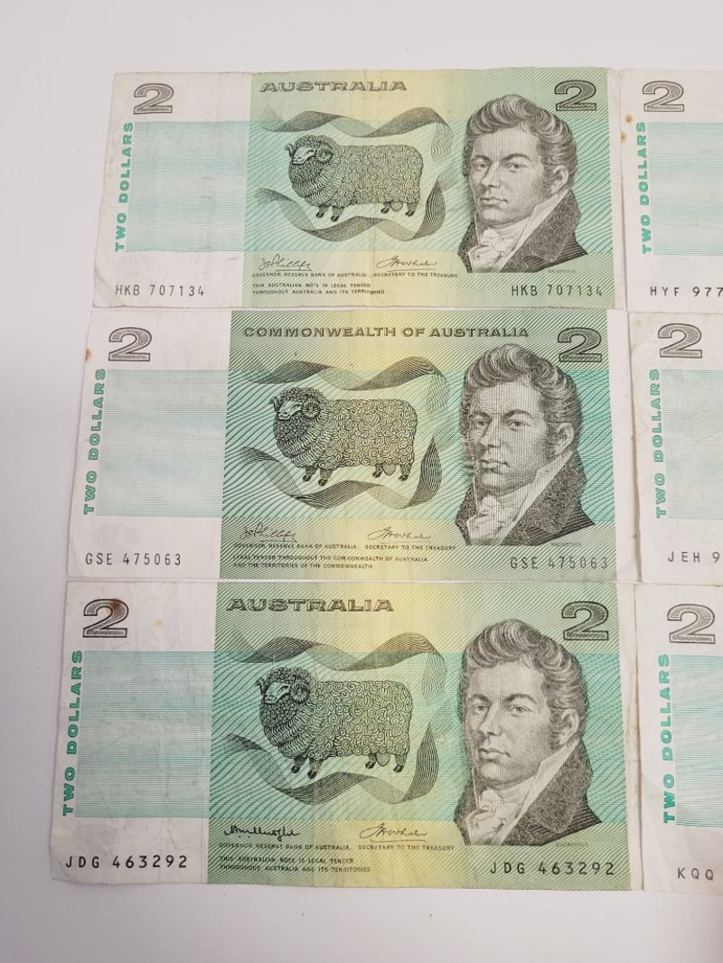9X $2 AUSTRALIAN BANK NOTES.488544+15