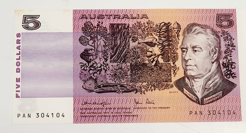 AUSTRALIAN $5 SIGNED BANKNOTE - PAN304104Condition: UncProvenance: Cv - $55488544+78