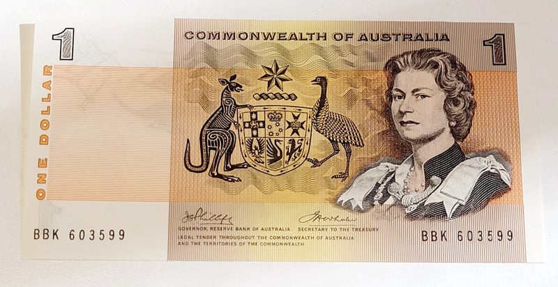 AUSTRALIAN $1 SIGNED BANKNOTE - BBK603599, R74, AUNCLittle Wavy, No FoldsCondition: AuncProvenance: Cv - $60488544+126