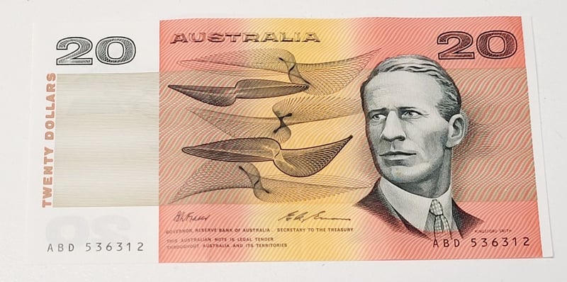AUSTRALIAN $20 SIGNED BANKNOTE - ABD536312, R415, AUNC488544+153