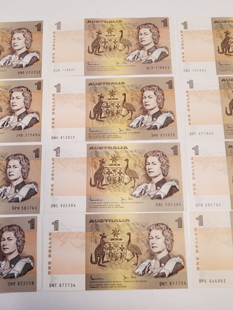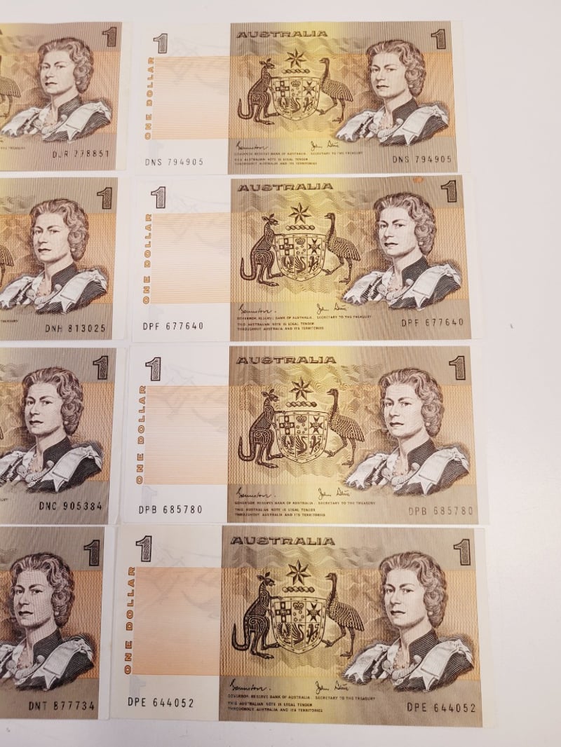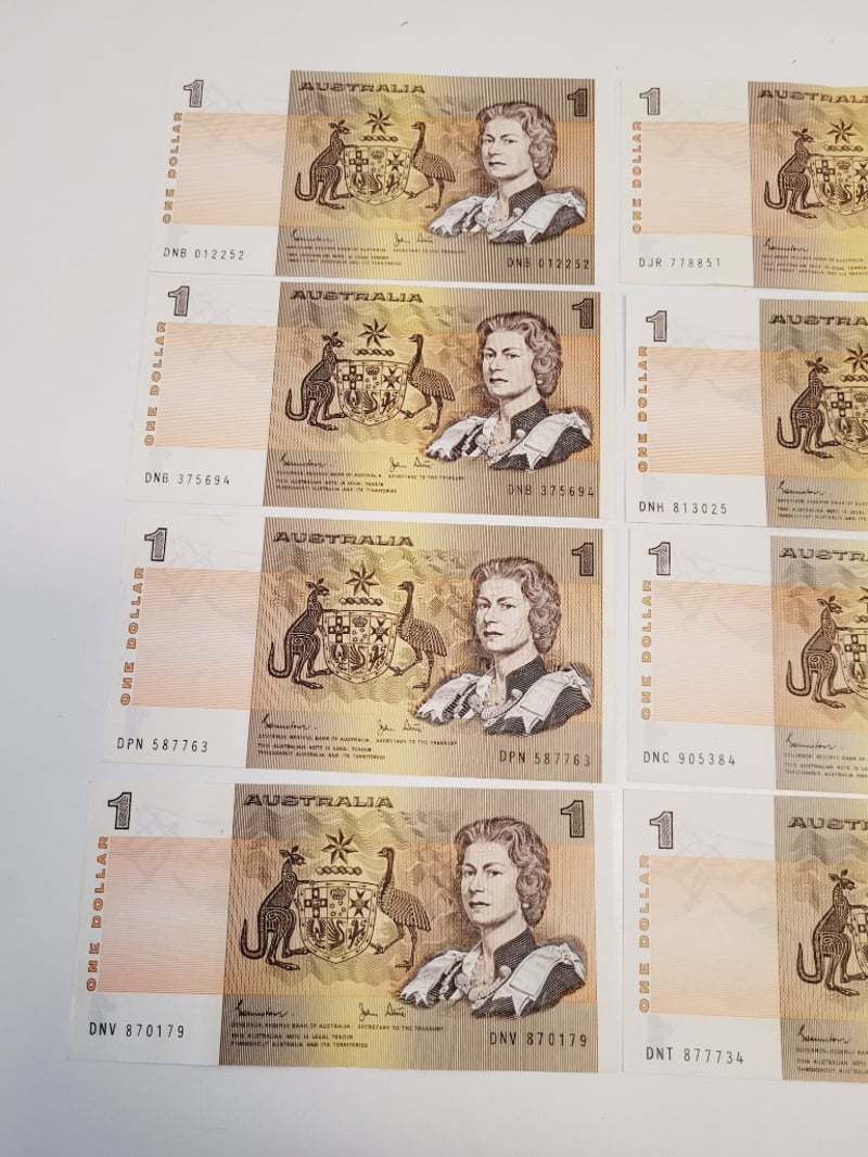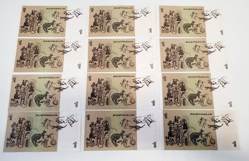 12X $1 AUSTRALIAN AUNC JOHNSTONE STONE SIGNED NOTES.488544+2