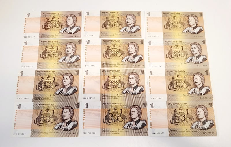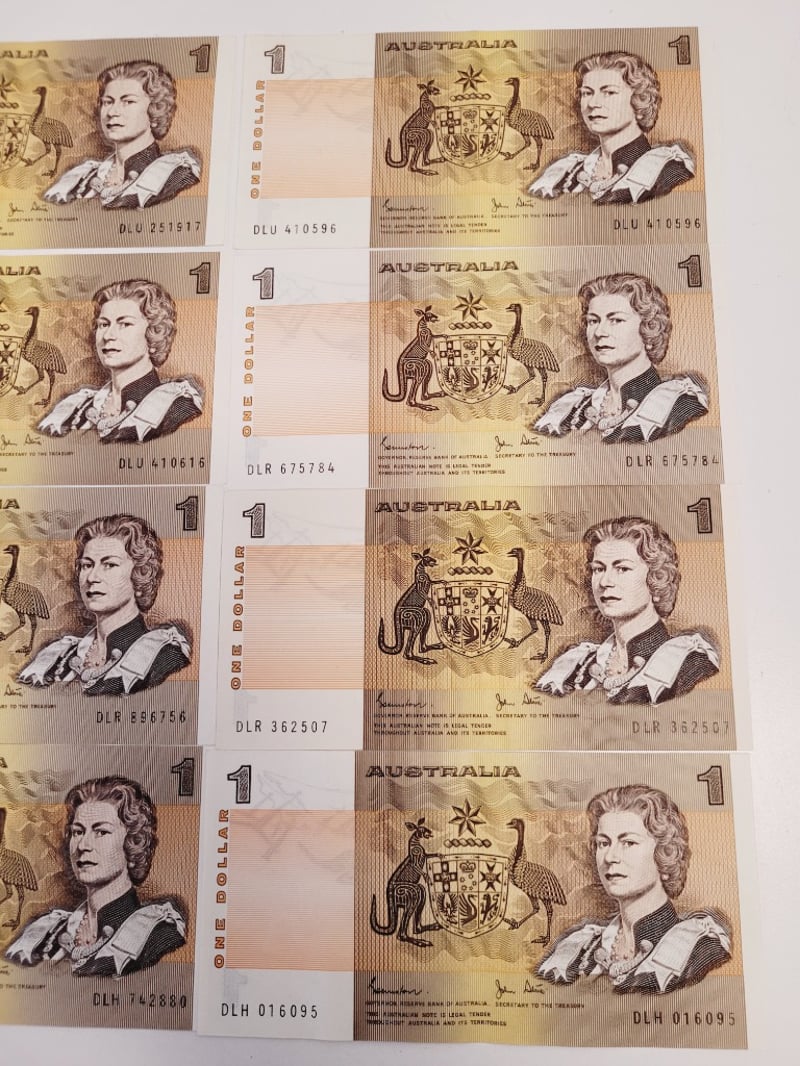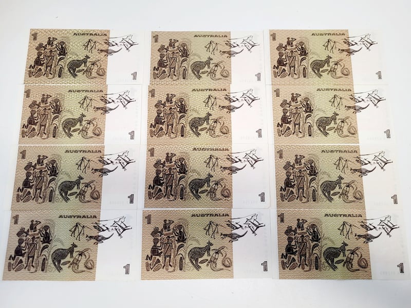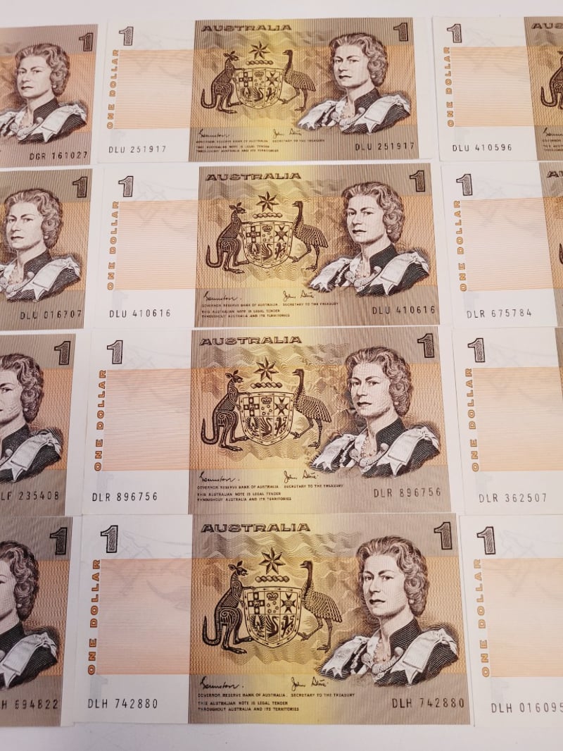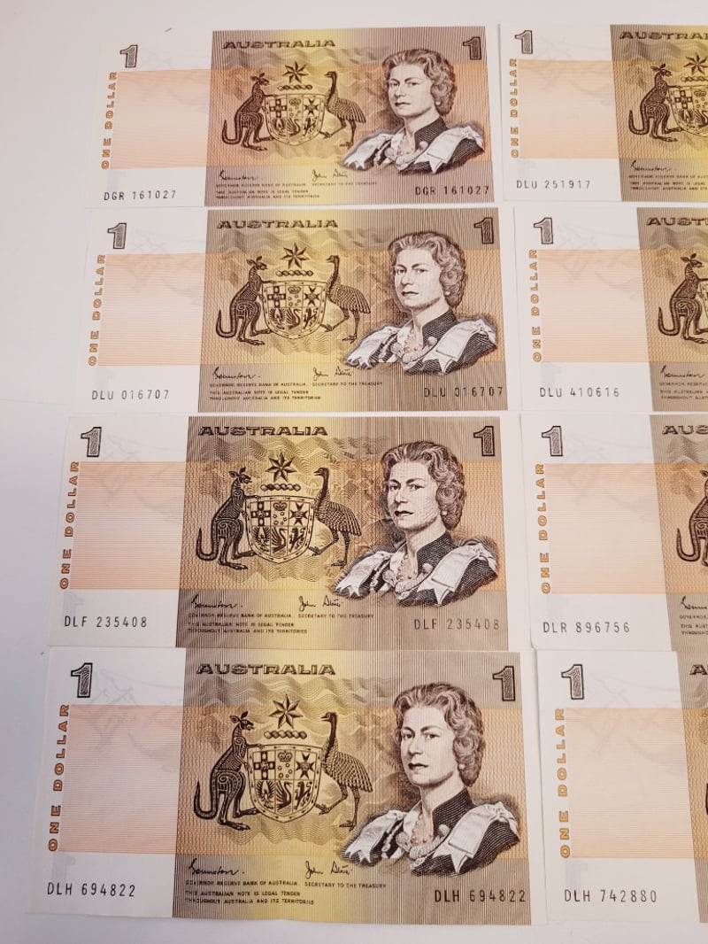 12X $1 AUSTRALIAN AUNC JOHNSTONE STONE SIGNED NOTES.488544+4