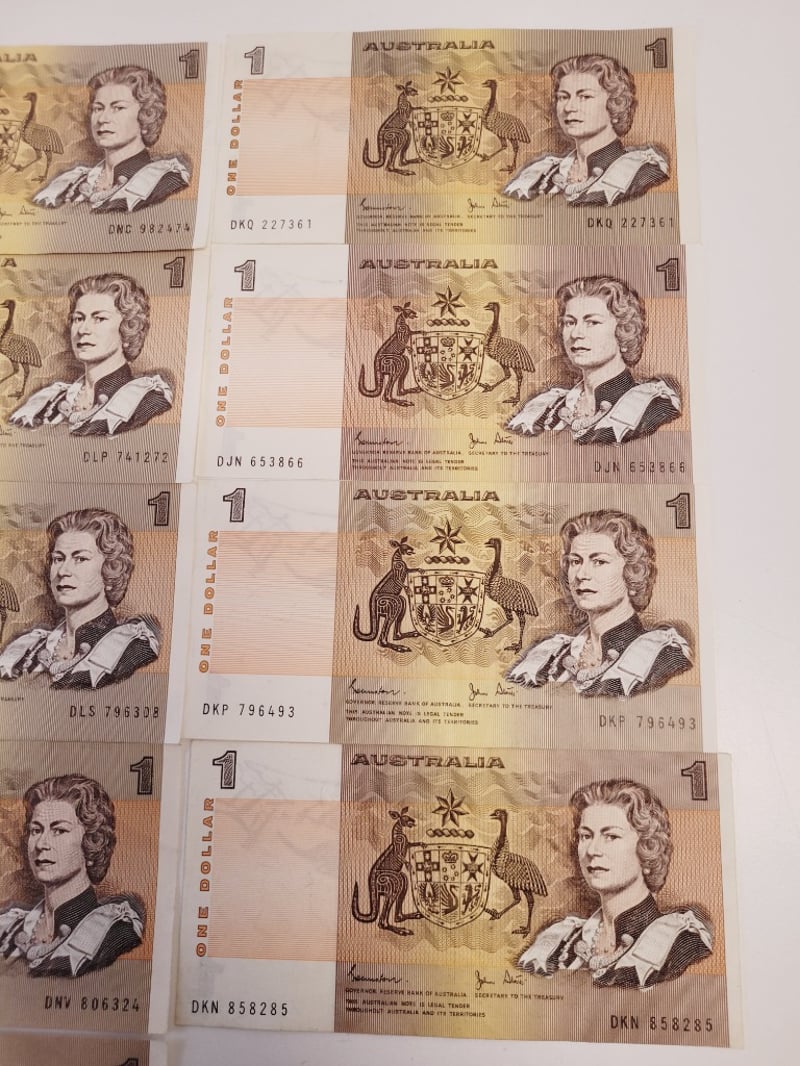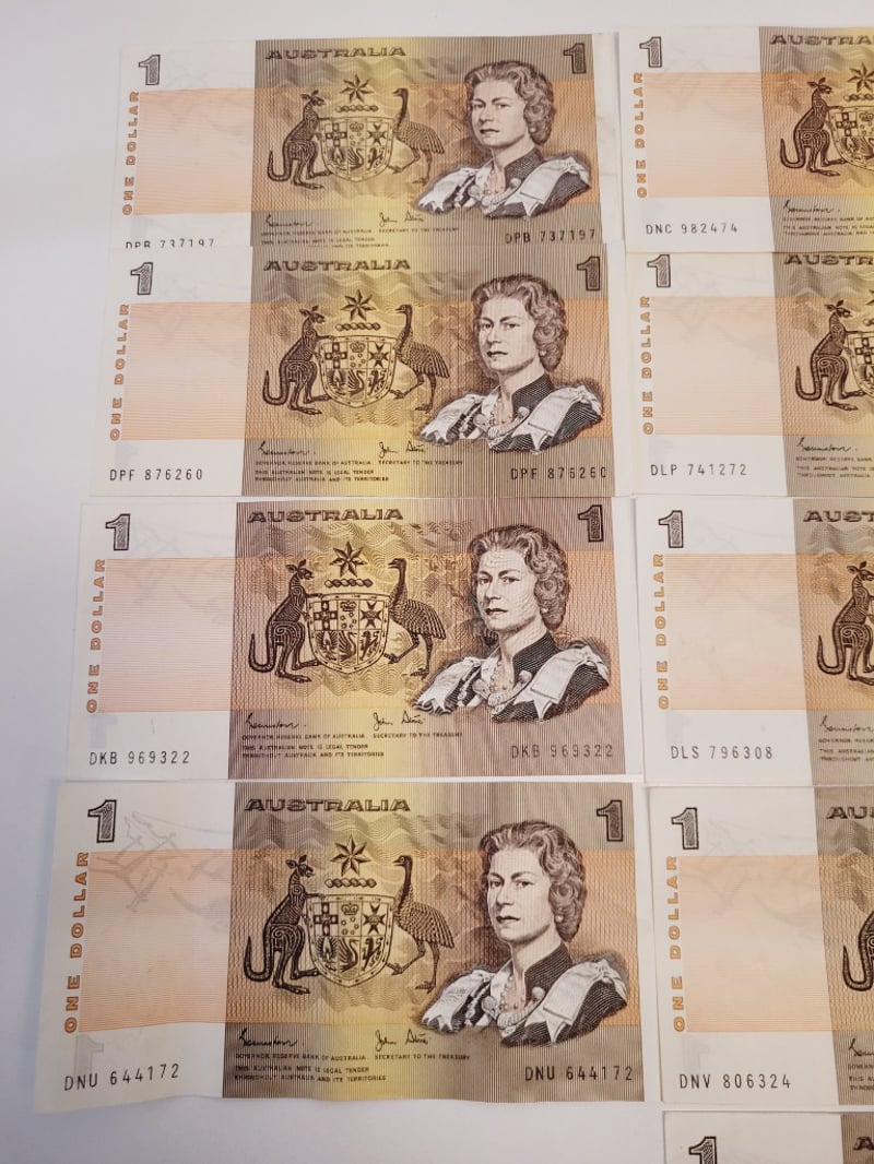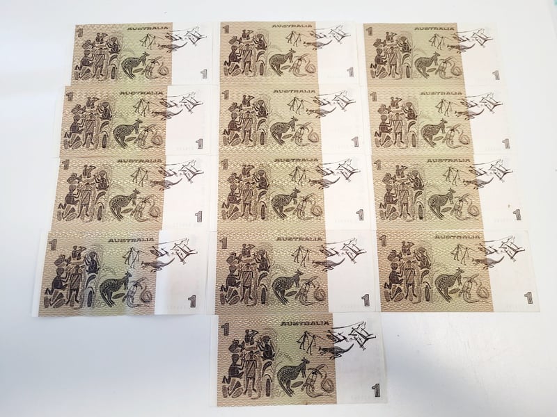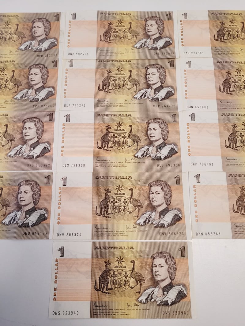 13X $1 AUSTRALIAN EF JOHNSTONE STONE SIGNED NOTES.488544+6