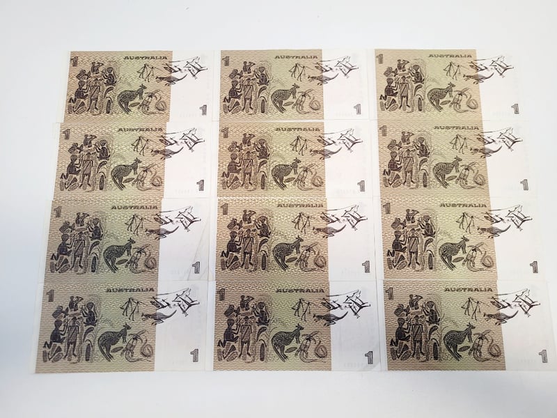 12X $1 AUSTRALIAN EF JOHNSTONE STONE SIGNED NOTES.488544+8
