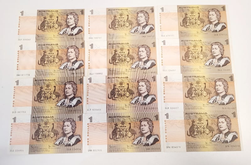 12X $1 AUSTRALIAN EF JOHNSTONE STONE SIGNED NOTES.488544+9