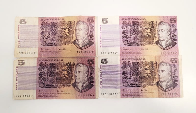 4X $5 AUSTRALIAN BANK NOTES.488544+13