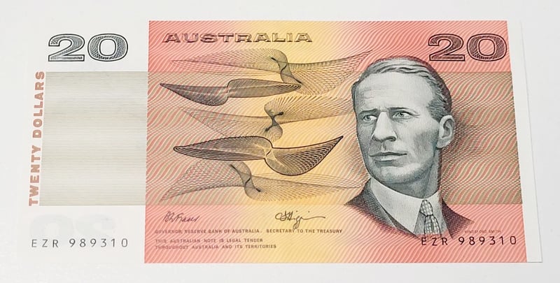 AUSTRALIAN $20 SIGNED BANKNOTE - EZR989310, R412, AUNC488544+154