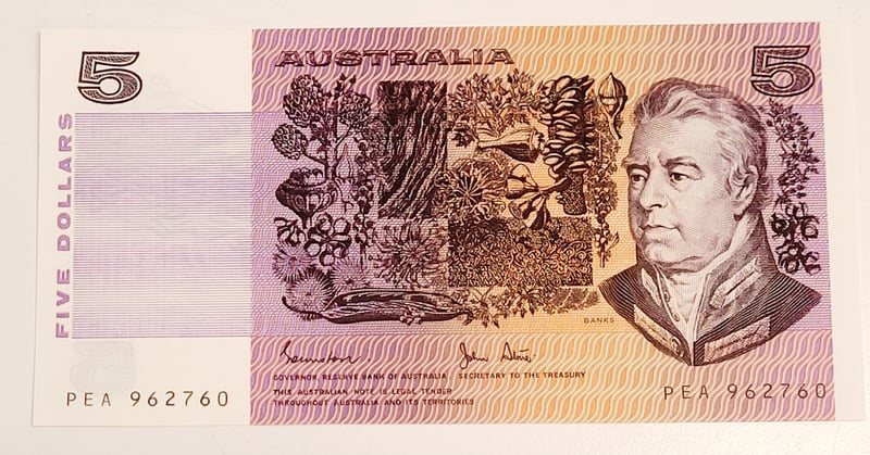 AUSTRALIAN $5 SIGNED BANKNOTE -PEA962760, R208 Condition: Unc Provenance: Cv - $55 488544+71
