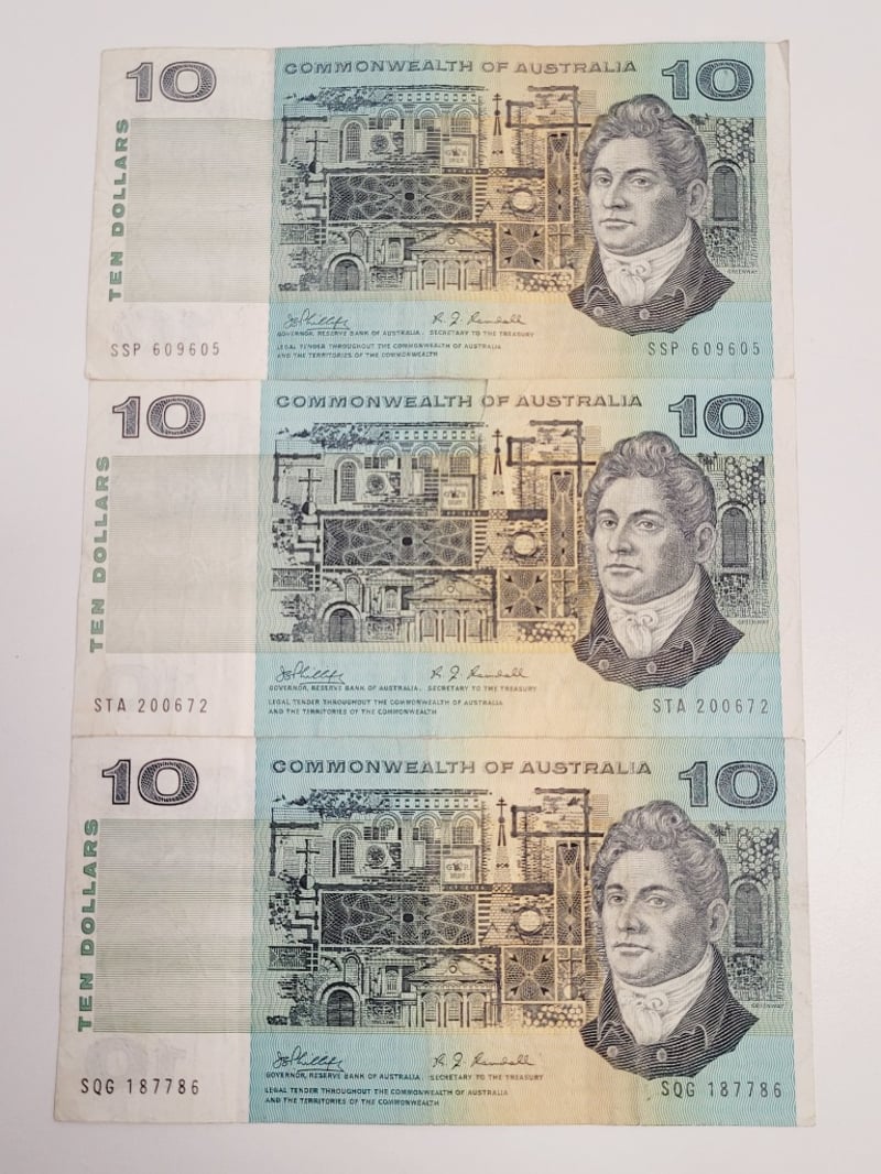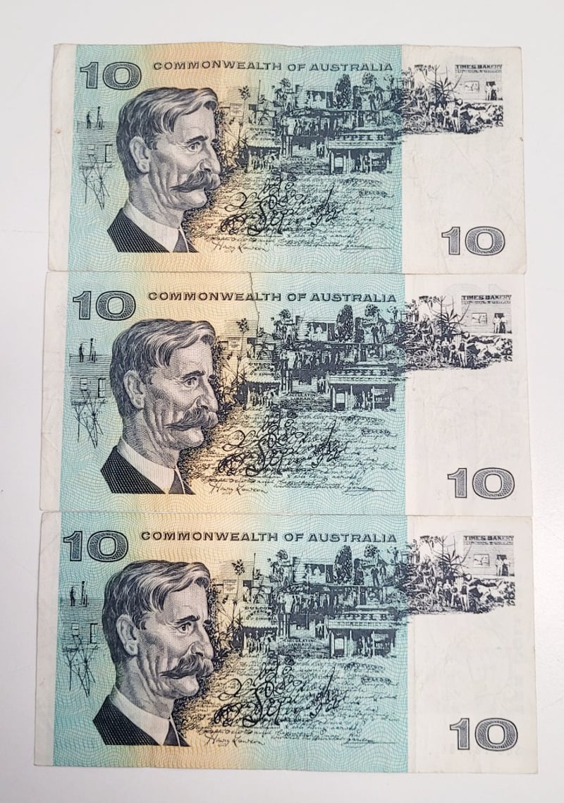 3X $10 AUSTRALIAN BANK NOTES.488544+19