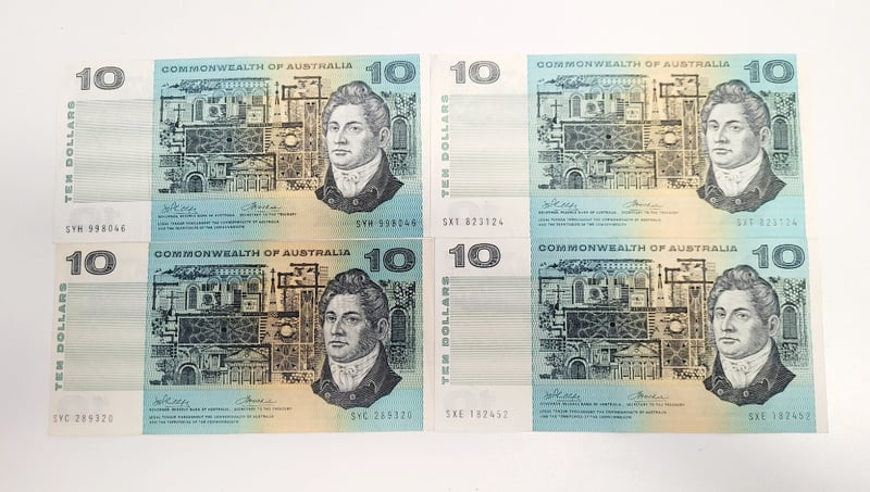 4X $10 AUSTRALIAN BANK NOTES.488544+24