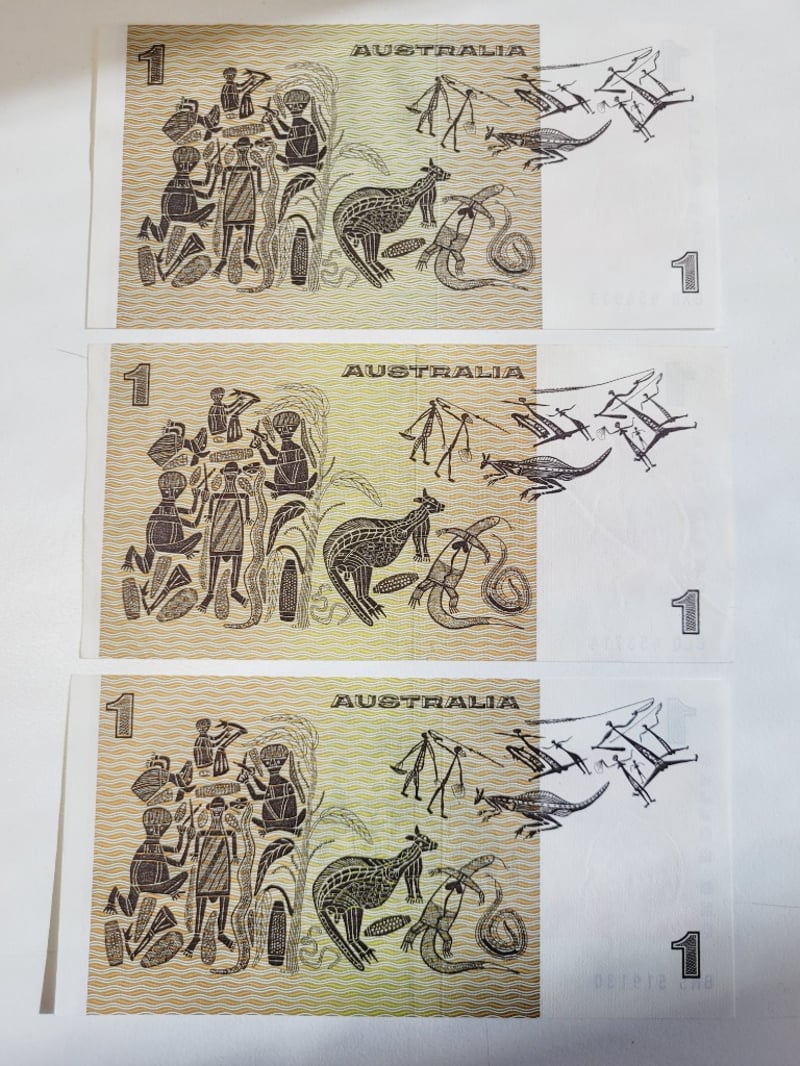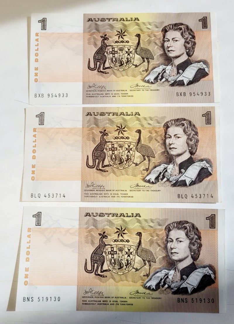 AUSTRALIAN $1 SIGNED BANKNOTE - BXB954933, BLQ453714, BNS519130, R75488544+129