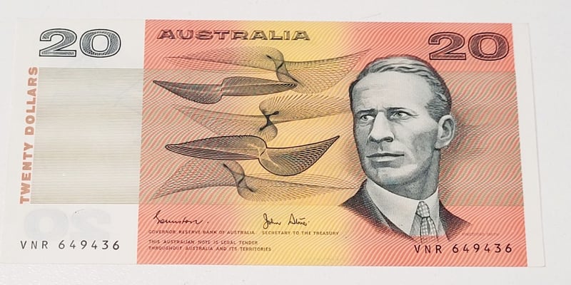 AUSTRALIAN $20 SIGNED BANKNOTE - VNR649436, R408, AUNC488544+150