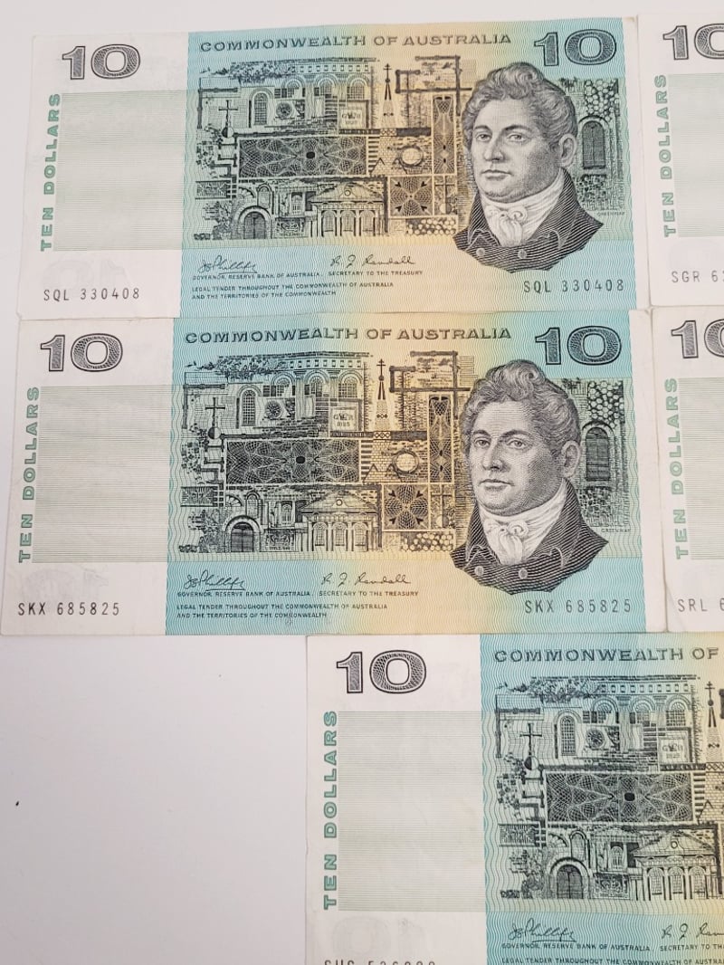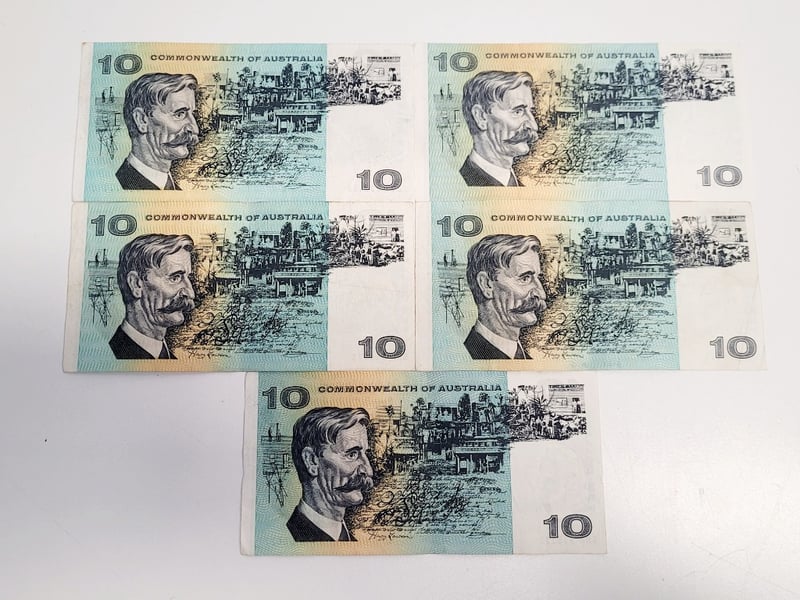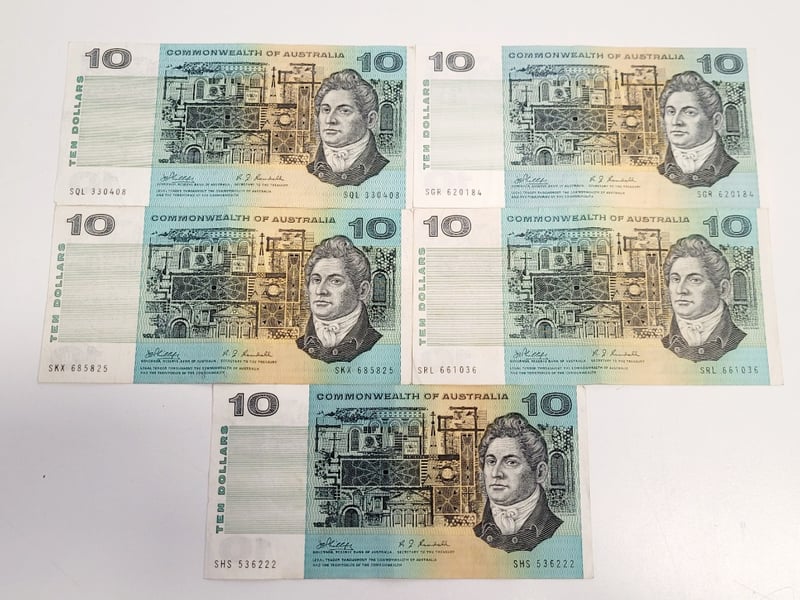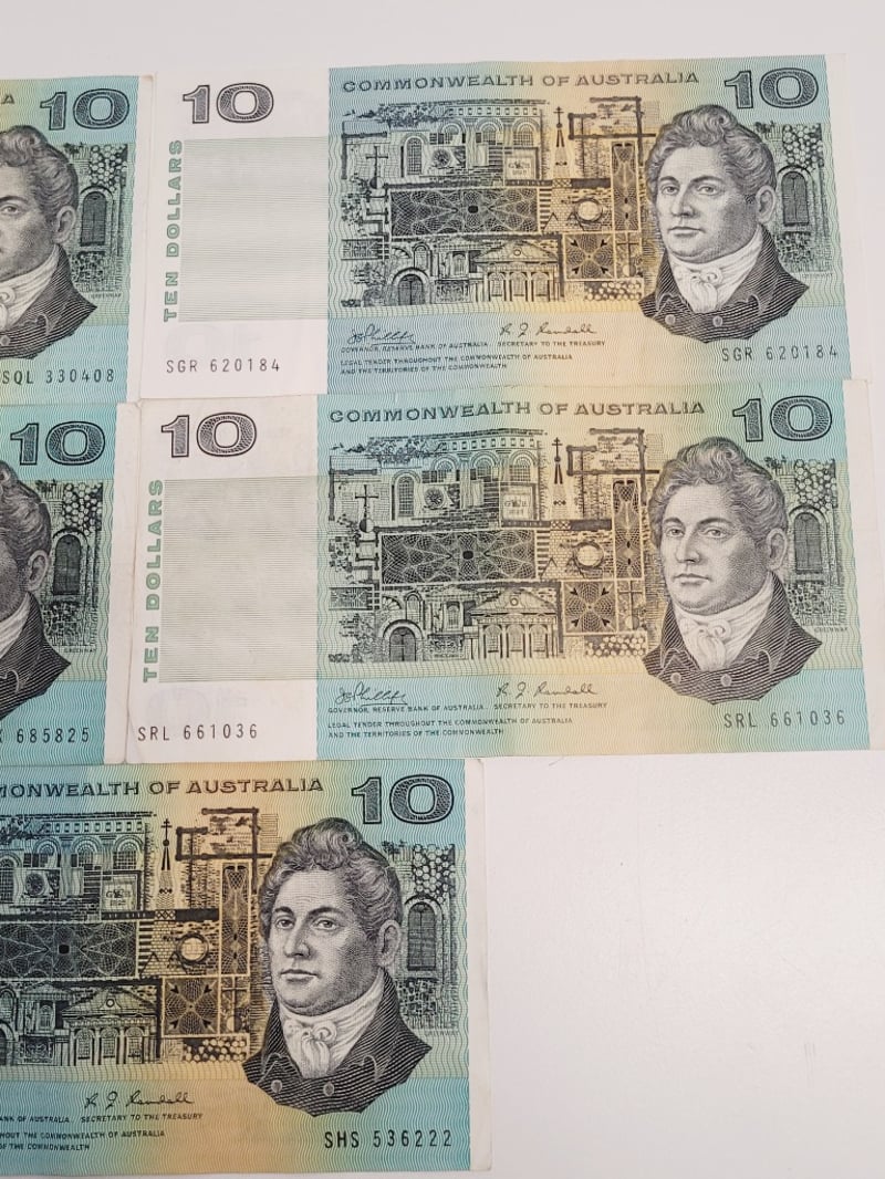 5X $10 AUSTRALIAN BANK NOTES. R303-F/VFProvenance: $35 Value Per Note488544+17