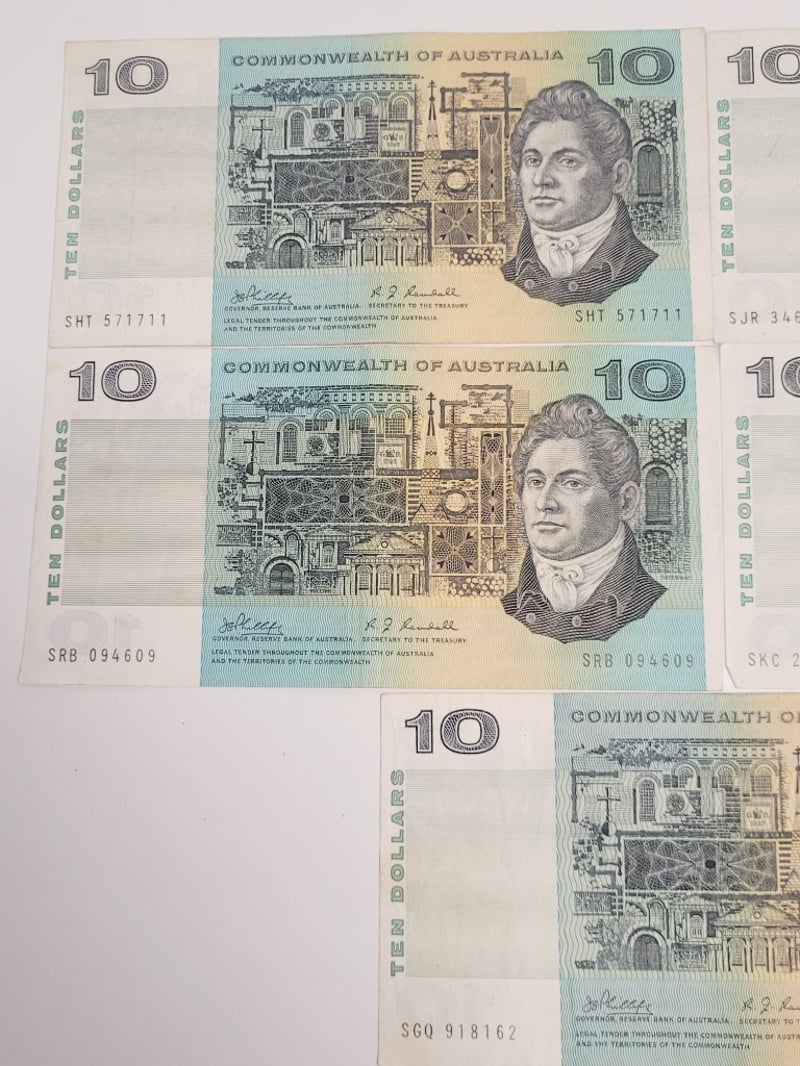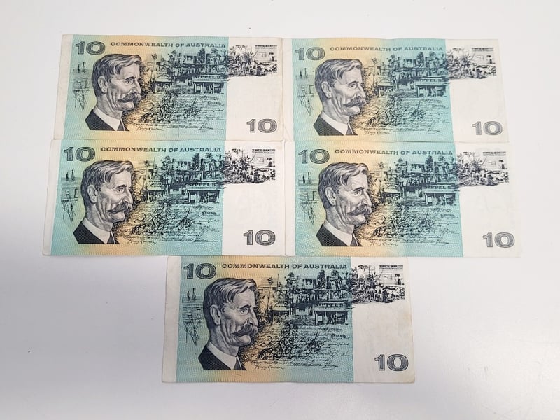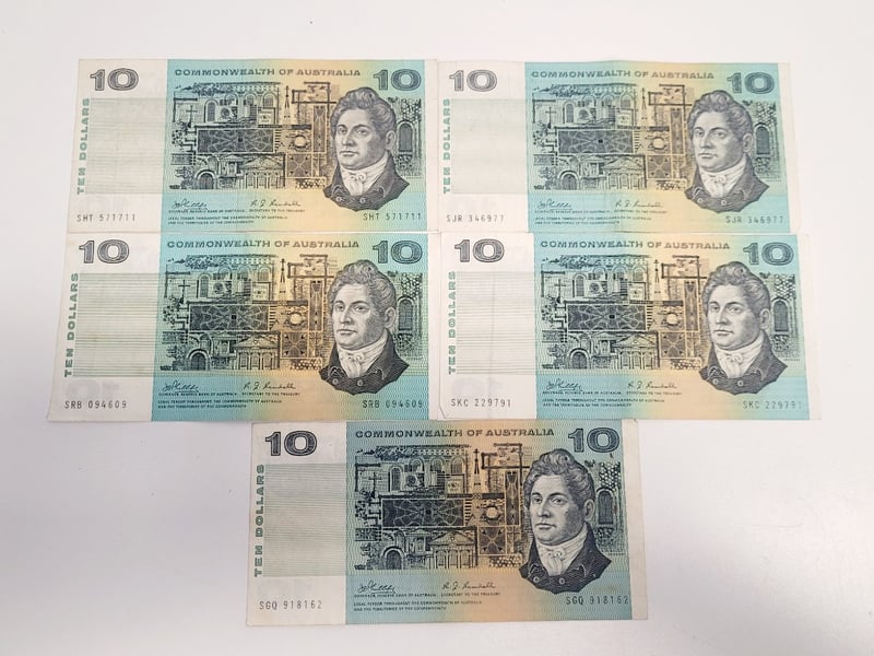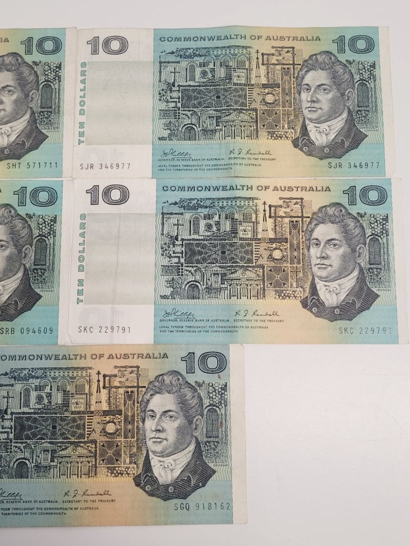 5X $10 AUSTRALIAN BANK NOTES.488544+20