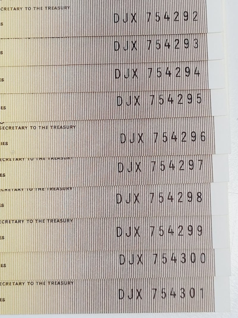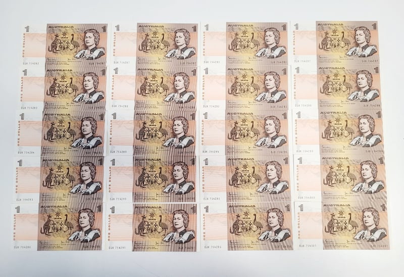 AUSTRALIAN $1 CONSECUTIVE BANKNOTES - J/STONE SIGNED. DJX754282-DJX754301, aUNC-UNC 488544+41