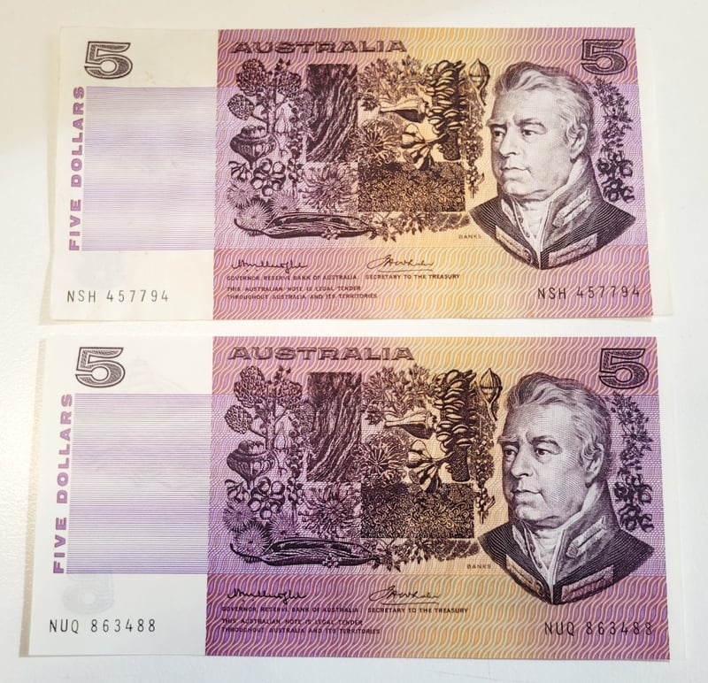 AUSTRALIAN $5 SIGNED BANKNOTE - NSH457794, NUQ863488, R206A488544+136