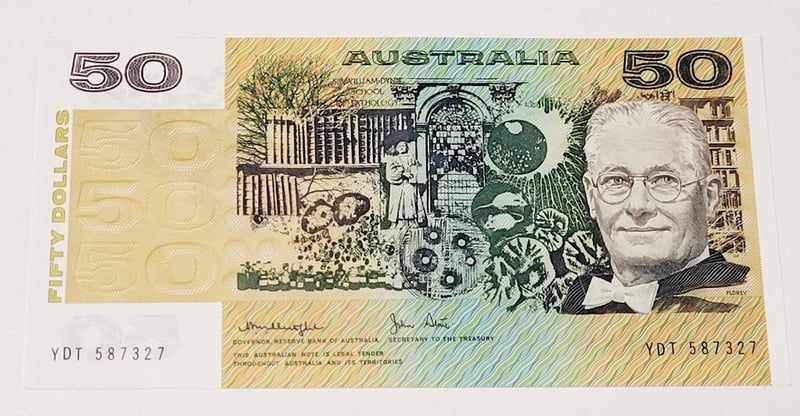 AUSTRALIAN $50 SIGNED BANKNOTE - YDT587327, R507, AUNC488544+155