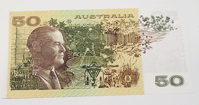 AUSTRALIAN $50 SIGNED BANKNOTE - YKQ398293, R508, AUNC488544+156
