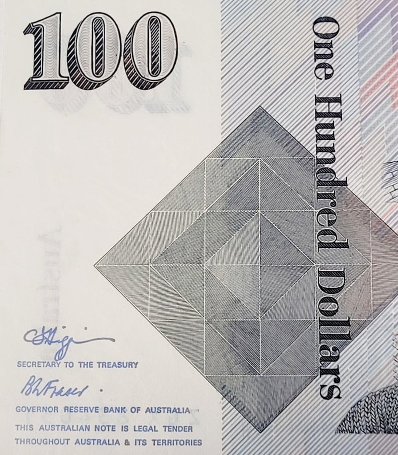 AUSTRALIAN $100 SIGNED BANKNOTE - ZGX834051, R612, AUNC488544+161