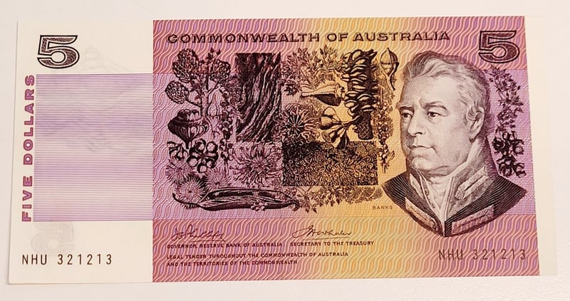 AUSTRALIAN $5 SIGNED BANKNOTE - NHU321213, R204 Condition: Unc Provenance: Cv - $275 488544+72