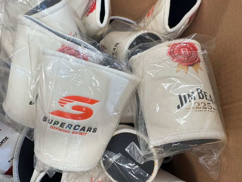 VINTAGE BRAND MERCHANDISE COLLECTION - HATS AND DRINK COOLERS LOT Item Size: Height: 40cm, Width: 40cm, Depth: 40cm, Weight: 7Kg Condition: Good - Refer To Images 584482+33