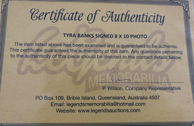 Tyra Banks Personally Signed 8 X 10 Photo.The Item Is Accompanied By A Certificate Of Authenticity.