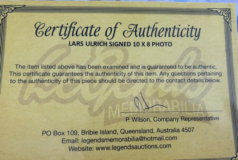 Lars Ulrich Personally Signed 8 X 10 Photo. The Item Is Accompanied By A Certificate Of Authenticity.