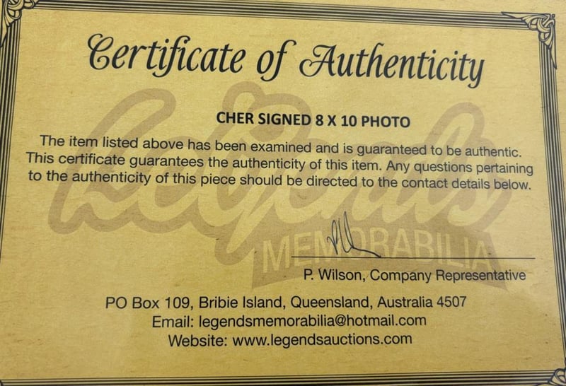 Cher Personally Signed 8 X 10 Photo. The Item Is Accompanied By A Certificate Of Authenticity.