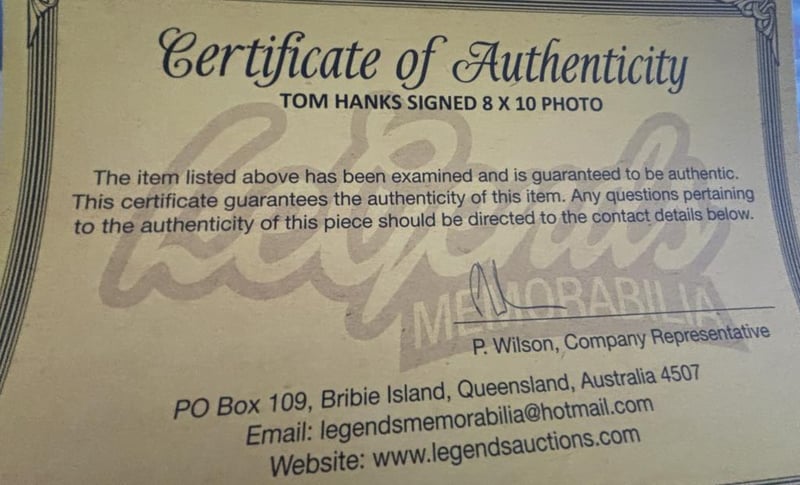 Tom Hanks Personally Signed 8 X 10 Photo. The Item Is Accompanied By A Certificate Of Authenticity.